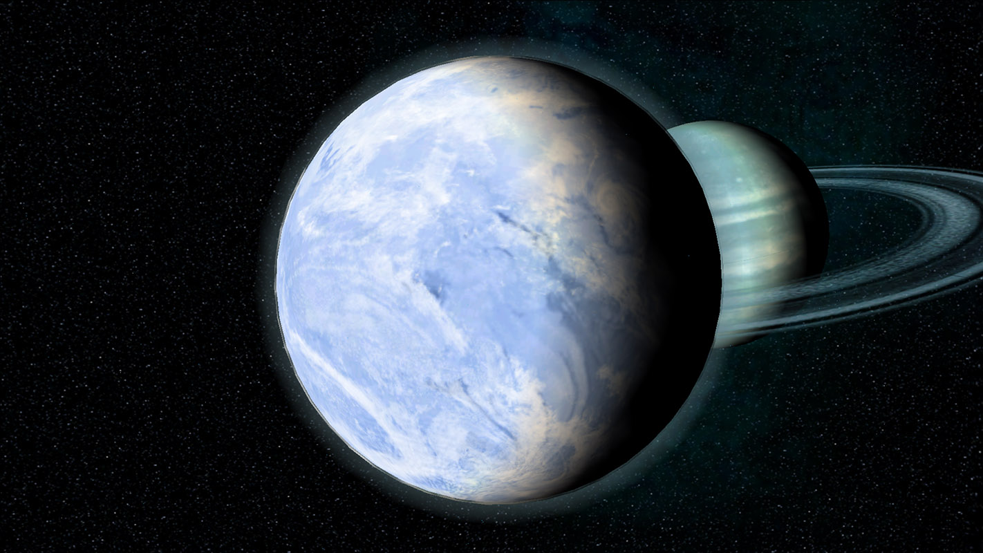 Alldor, the main star of the system is an orange star of the spectral class K. Circled by a type A white dwarf. At a middle distance of 3180 mk Andoria I draws its course, a naked rock planet. Next is Andoria II, likewise a hopeless rock world. On the third planet of the system, Andoria III, lies a colony as well as mines where Topaline ore and Duranium are mined. These mines are of great importance for the Andorian dockyards and for the economy of the homeland world. The next planet is Andoria IV, an enormous blue gas ball, which is surrounded by a planetary ring. Andoria IV possesses 3 moons, one of them is Andoria, the homeland world of the Andorians.