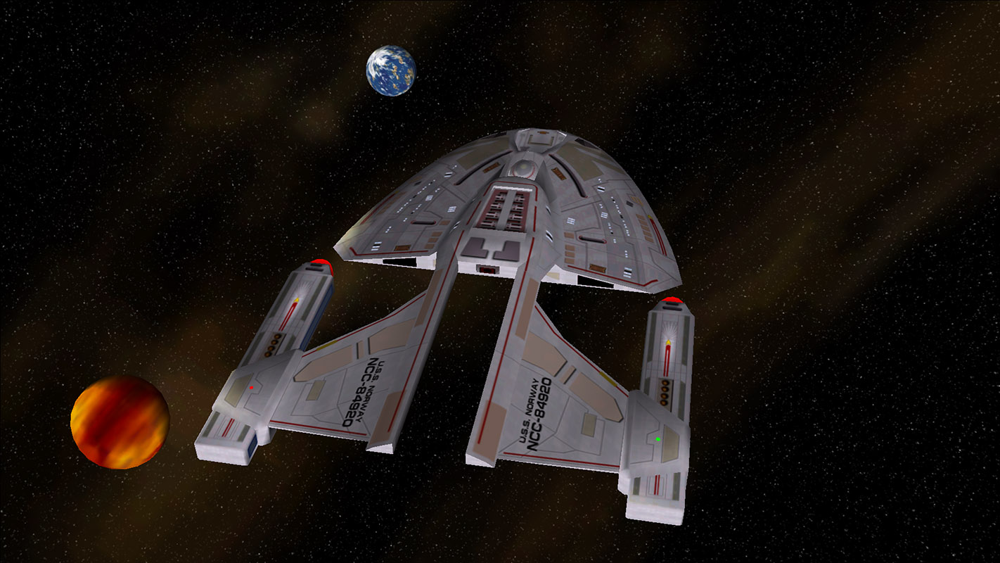 Designed to function for long periods in non-definitive missions, the Norway Class starship is visually impressive on first sight. Though not the largest ship in Starfleet by any means, its midsize condition allows it to both impose and relieve those that see it as an arm of Federation sovereignty when it is encountered.