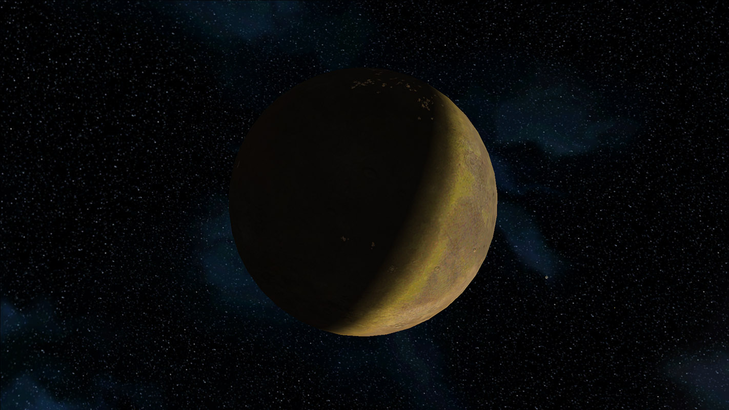 After its odyssey, which took centuries, the Vulcans reached Romulus, a planet that all their needs finally corresponded and which appeared as a perfect place, to create a new civilization. After Romulus was settled over one millenium by a group of vulcan renegades, Remus slowly became colonized and soon thereafter the exploration of its rich dilithium sources began. Remus the second of the double planet system knows a special planetary characteristic. One half of Remus is always facing to the sun while the other side always faces away from it. The conditions on the night site are appropriate for a colonisation, however on the day side of Remus constantly high temperatures are prevailing. Although both planets circle their central star separately, Romulus and Remus are called twin planets.